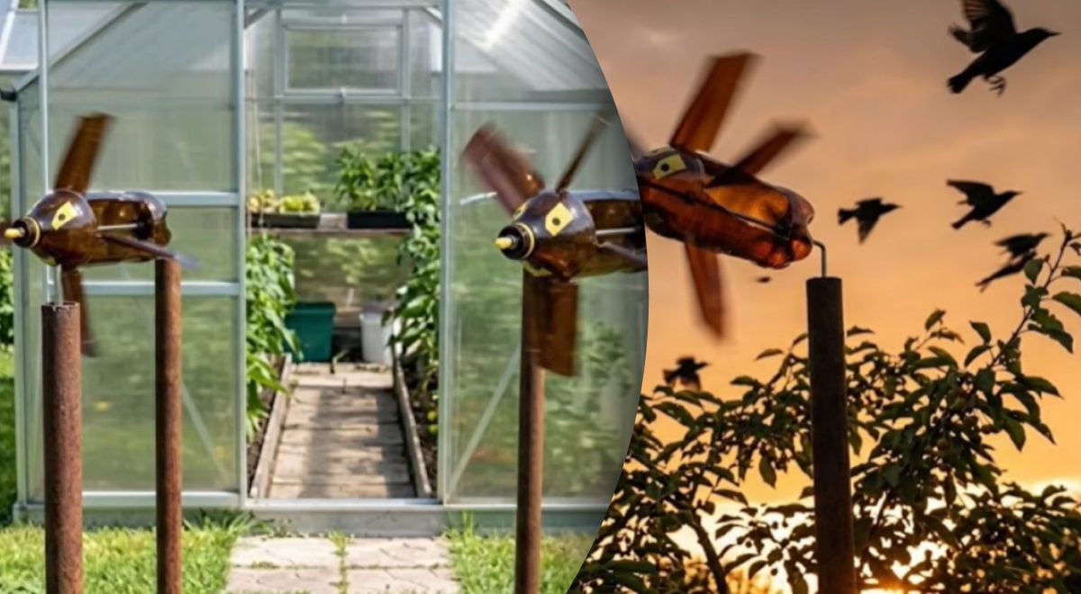 Kanāla “Ražas noslēpumi” autors iesaka izgatavot īpašas vējdzirnavas, kas darbojas uzreiz divos virzienos: ar savu izskatu atbaida putnus un ar vibrāciju pazemē izdzen kurmjus. Šīs amatniecības galvenā priekšrocība ir tā, ka tā darbojas bez baterijām un visu diennakti.